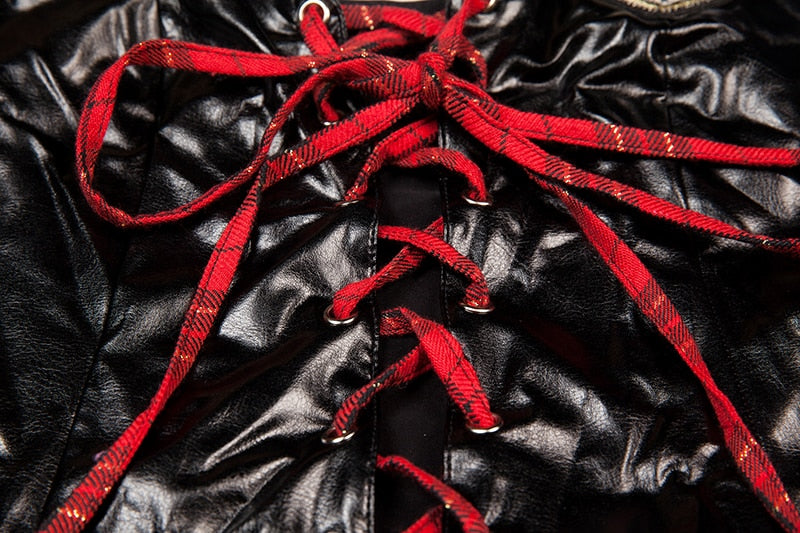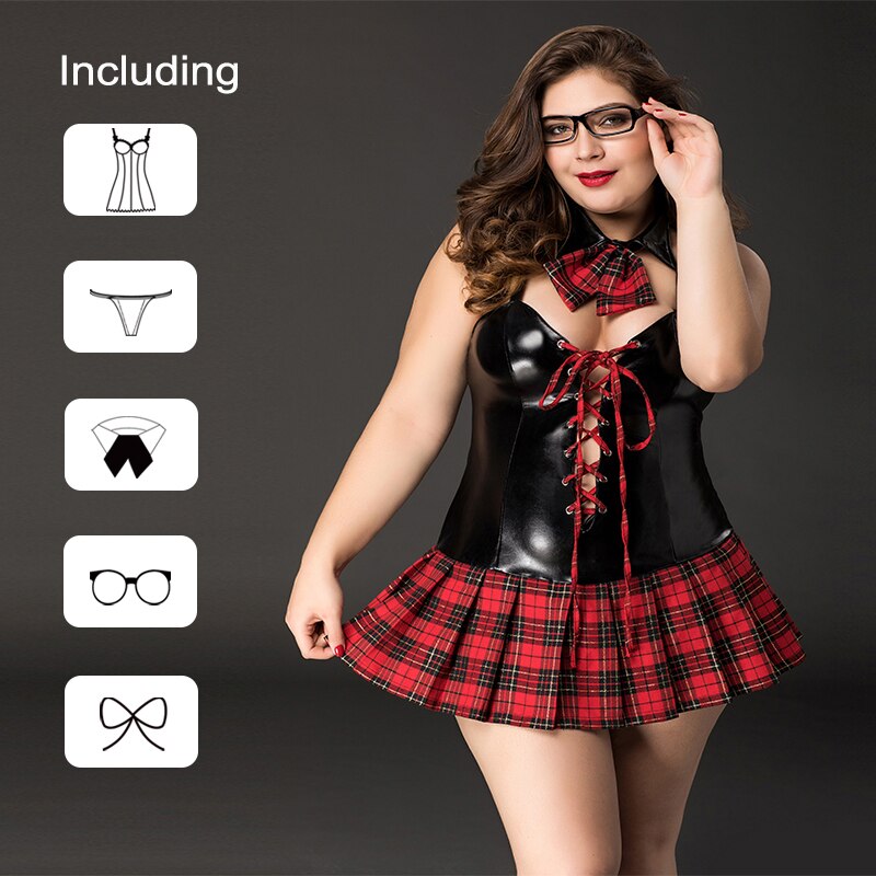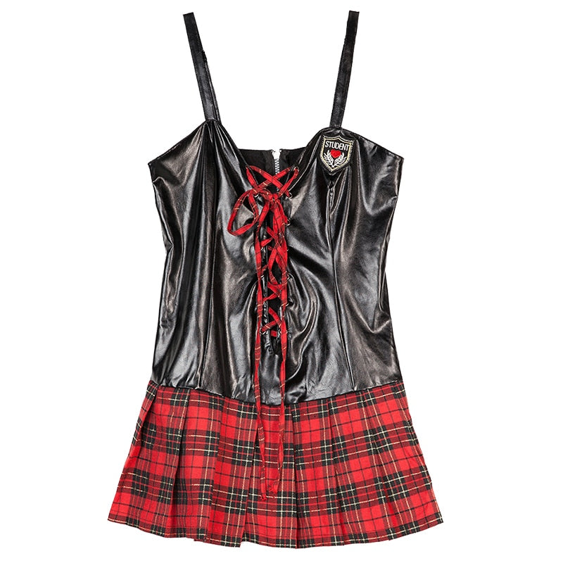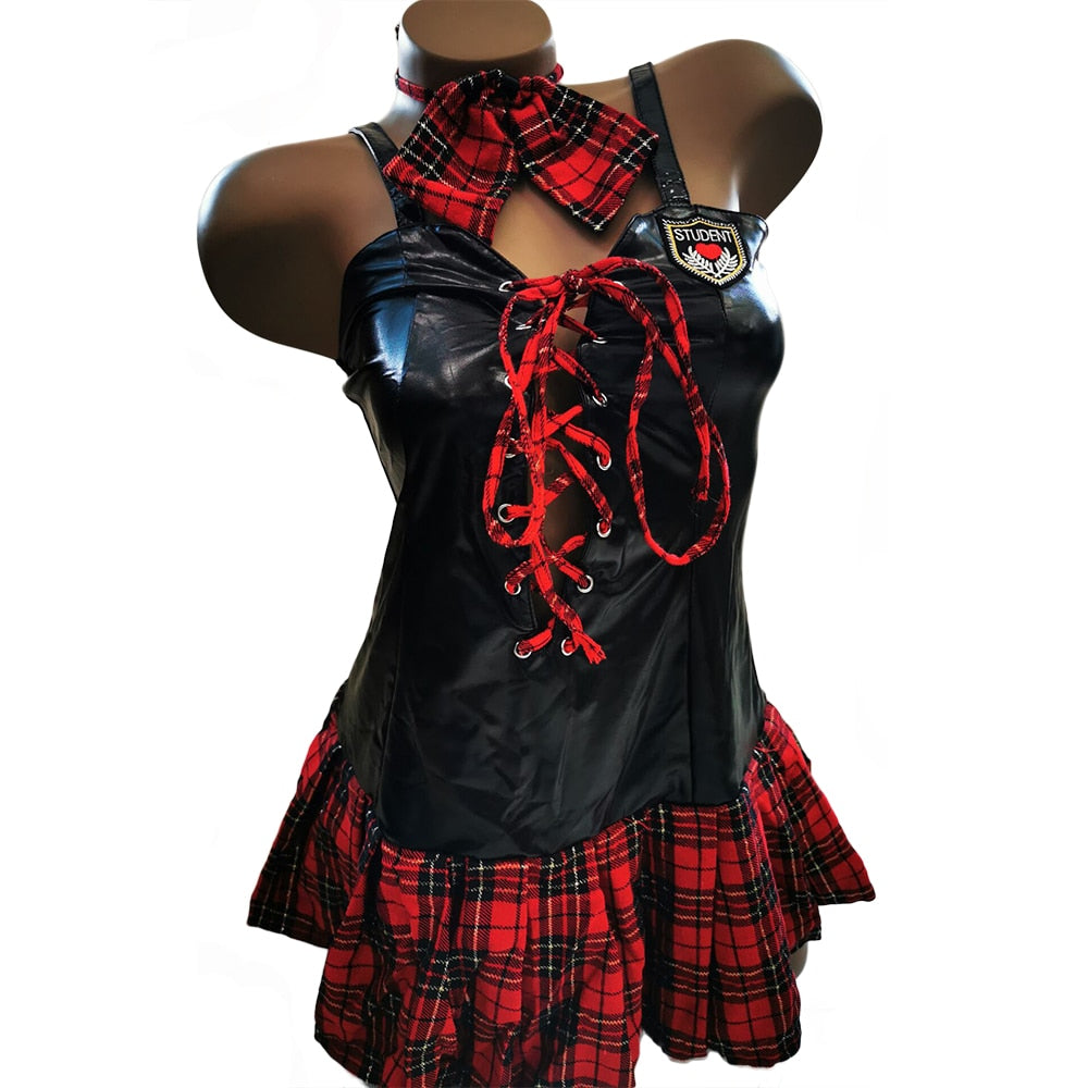 School Girl Sex Uniform Faux Leather and Plaid Skirt Lingerie