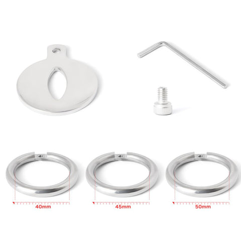 Stainless Steel Chastity Cage - Screws Cock Ring